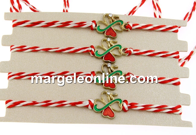 Bratara martisor cu nod culisant, link metalic cu cristale, dimensiune link 18x13mm. Pretul este pentru 4 bratari ca in imagine.
