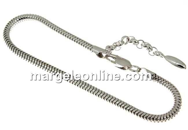 Bratara din argint 925 placat cu rodiu, marcata, lungime: 17.5cm plus 4.5cm lantisor extensie , grosime: 3mm, prevazuta cu incuietoare. Pretul este pentru 1 bucata.