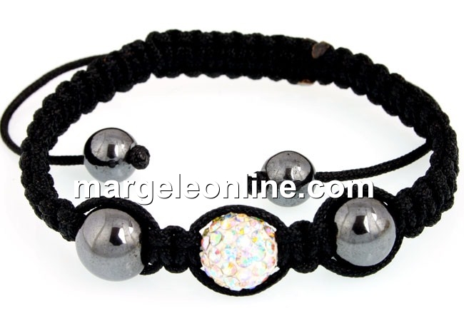 Bratara shamballa aurore boreale, marime: 10mm, 2 margele hematit, marime: 10mm si 2 margele hematit, marime: 8mm, realizata cu nod reglabil culisant. Pretul se refera la 1 bratara.