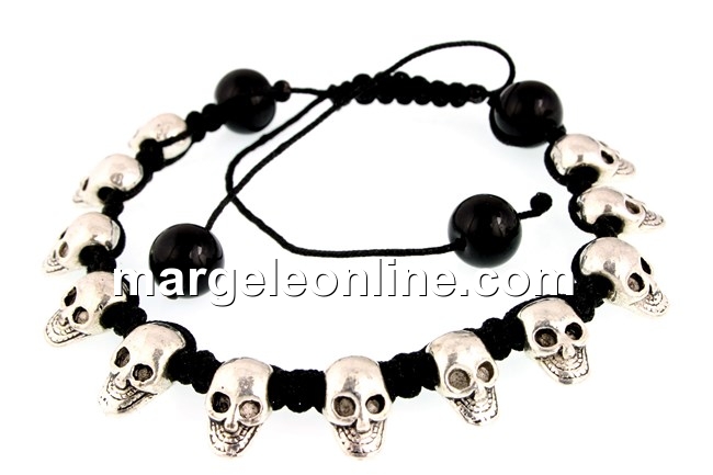 Bratara shamballa cu 12 cranii metal, marime: 11x7mm, realizata cu nod reglabil culisant. Pretul se refera la 1 bratara.