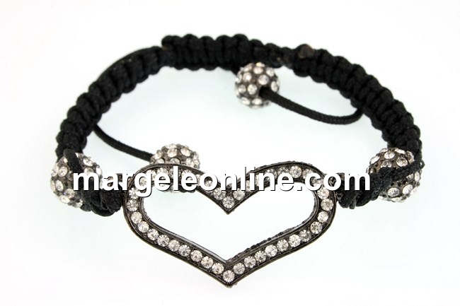 Bratara shamballa cu link inima, marime: 36x20mm, cu 4 margele shamballa metal de 8mm, realizata cu nod reglabil culisant. Pretul se refera la 1 bratara.