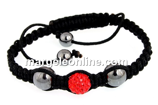 Bratara shamballa light siam, marime: 10mm, 2 margele hematit, marime: 10mm si 2 margele hematit, marime: 8mm, realizata cu nod reglabil culisant. Pretul se refera la 1 bratara.