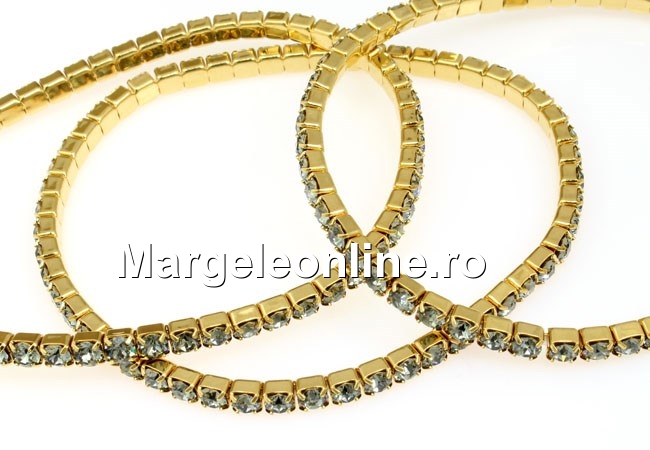 Bratara elastica cu cristale Swarovski 1088, cu baza placata cu aur, marime cristale 3mm, lungime 18cm, anti nichel alergenica. Pretul este pentru 1 bucata.