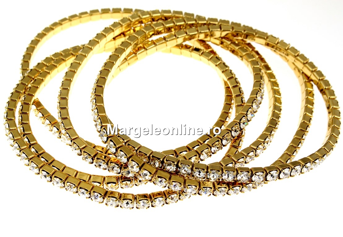 Bratara elastica cu cristale Swarovski 1088, cu baza placata cu aur, marime cristale 3mm, lungime 18cm, anti nichel alergenica. Pretul este pentru 1 bucata.