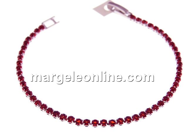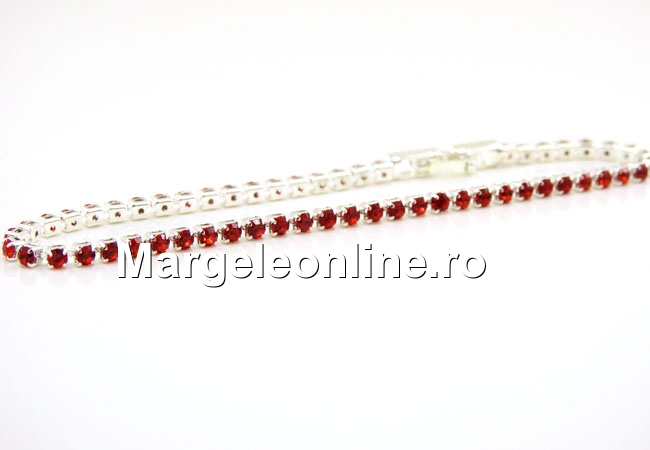 Bratara tennis cu cristale , culoare rosu intens, metal comun, dimensiune cristal: 2.2mm, latime 2.4mm, lungime:18cm. Pretul se refera la 1 bucata.