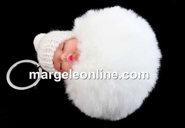 Breloc pentru geanta, bebe puf, culoare alb, dimensiune 10x8cm, este prevazut cu inel prindere. Pretul este pentru o bucata.