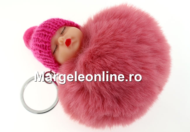 Breloc, bebe puf, roz vintage, 10cm - x1