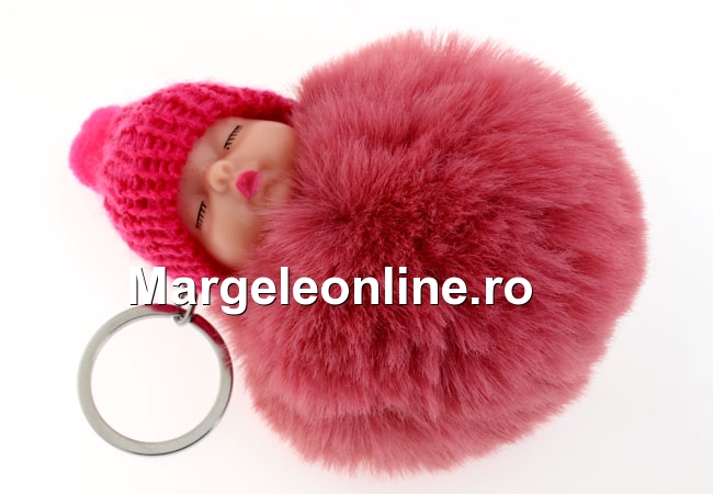 Breloc, bebe puf, roz vintage, 10cm - x1