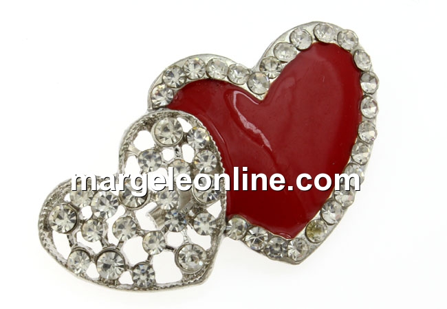 Brosa, 2 inimi cu cristale, 50mm - x1