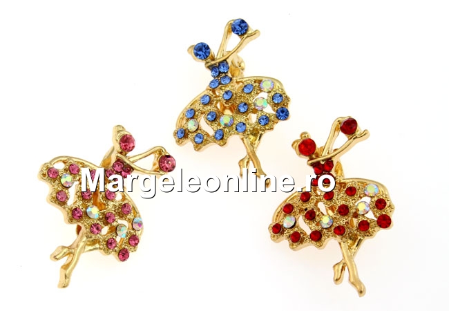 Brosa, balerina cu cristale, 29x20mm - xset 3buc