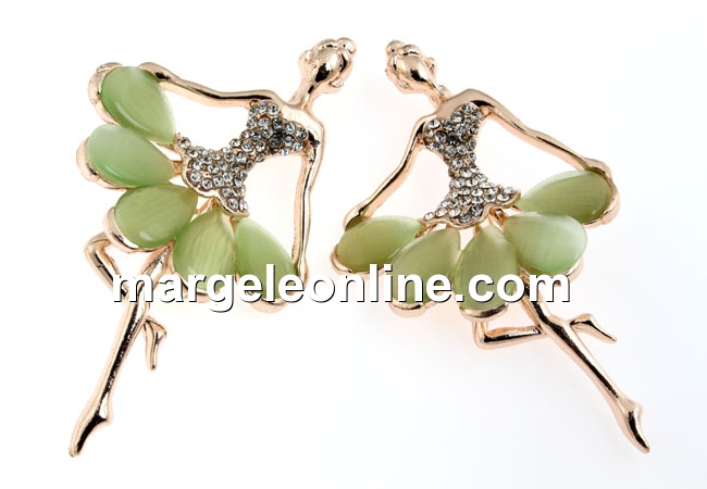 Brosa, balerina cu cristale si ochi de pisica, 76x46mm - x1