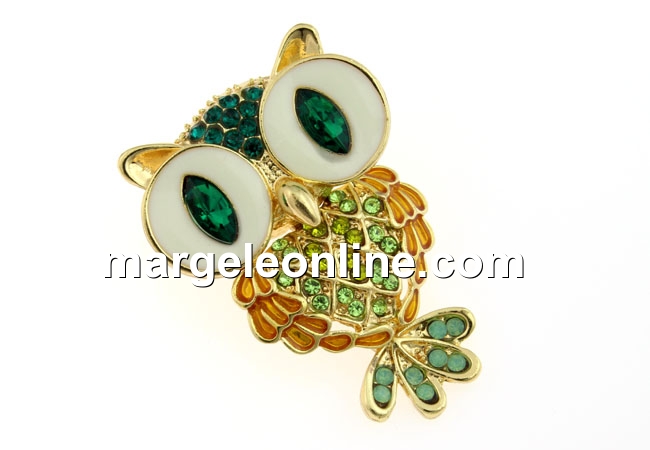 Brosa, bufnita cu cristale, 41x28mm - x1