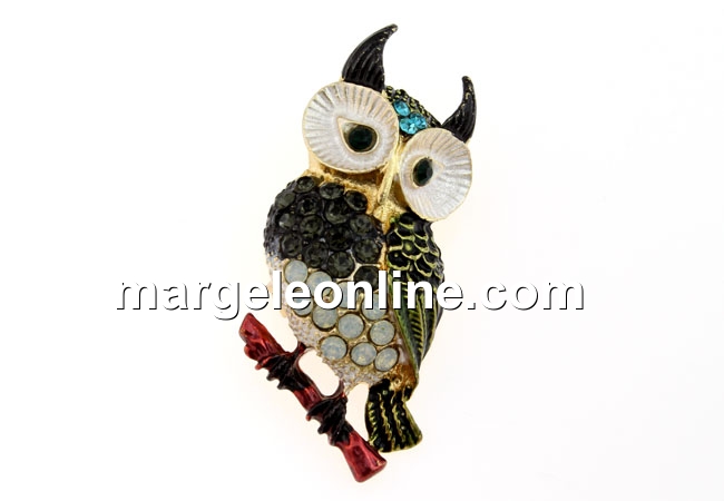 Brosa, bufnita cu cristale, 50x20mm - x1