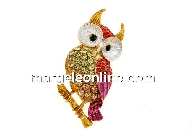 Brosa, bufnita cu cristale, 50x20mm - x1