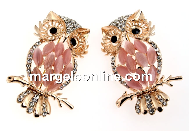 Brosa, bufnita cu cristale si ochi de pisica, 57x37mm - x1