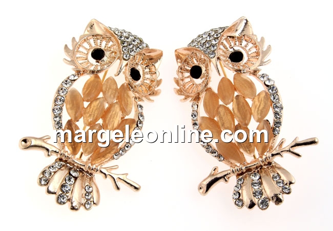 Brosa, bufnita cu cristale si ochi de pisica, 57x37mm - x1