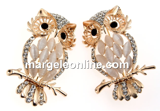 Brosa, bufnita cu cristale si ochi de pisica, 57x37mm - x1