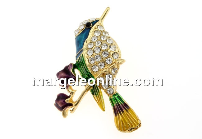 Brosa, colibri cu cristale, 43x32mm - x1