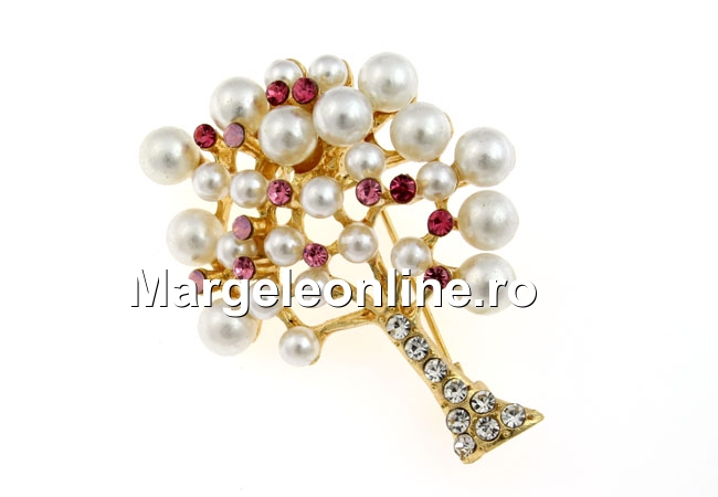 Brosa, copacul vietii cu cristale si perle, 45x36mm - x1