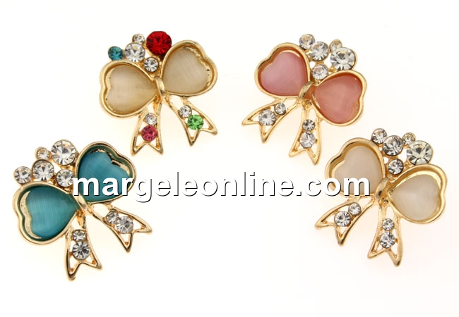 Brosa, metalica, cu cristale si cabochoane ochi de pisica, dimensiune 22mm. Pretul este pentru 4 bucati. - (1/culoare)
