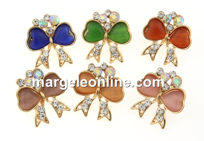 Brosa, metalica, cu cristale si cabochoane ochi de pisica, dimensiune 23mm. Pretul este pentru 6 bucati - (1/culoare).