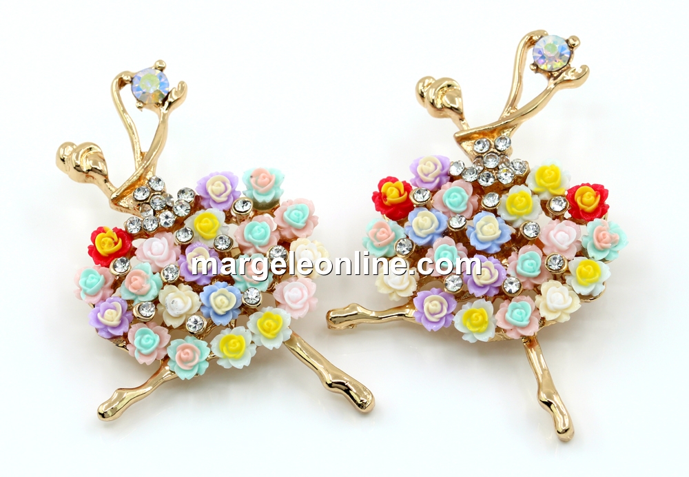 Brosa martisor, Balerina cu flori si cristale, 5.5x3.8cm - x1