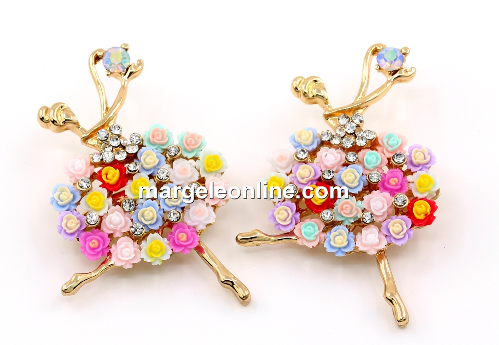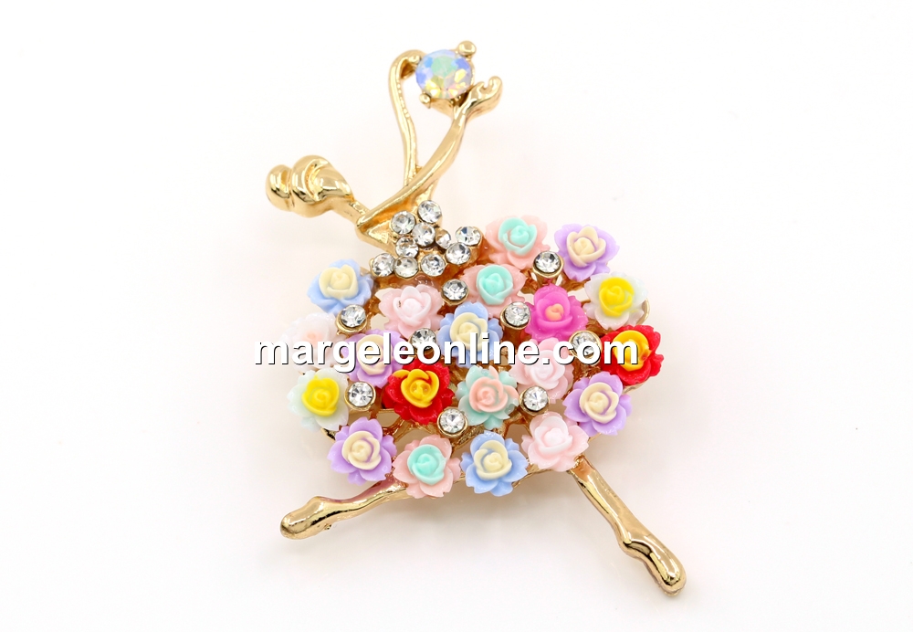 Brosa martisor, Balerina cu flori si cristale, 5.5x3.8cm - x1