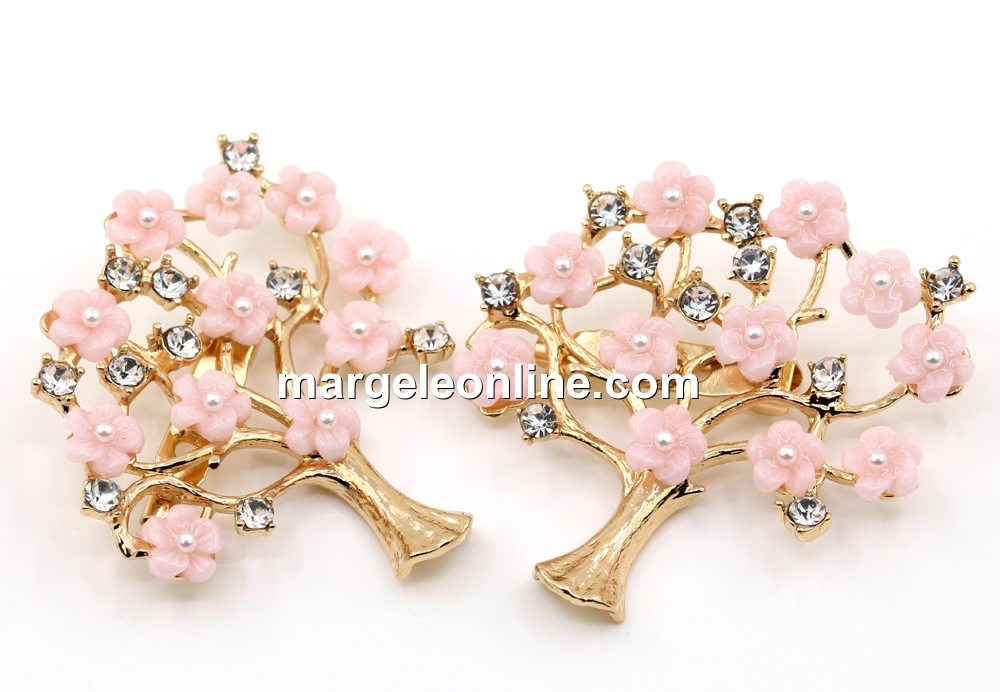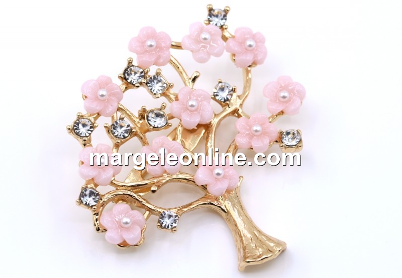 Brosa metalica cu flori roz pastel, cu cristale si perlute, ideala pentru martisor, dimensiune totala: 4.9x4.9cm. Pretul este pentru 1 brosa.
