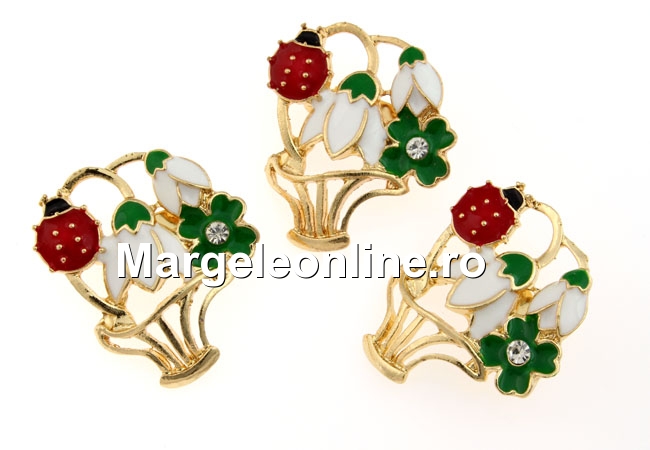 Brosa martisor, cosulet cu ghiocei, 29x24mm - xset 3buc