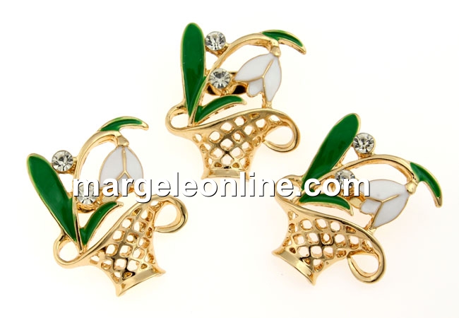 Brosa martisor, cosulet cu ghiocel cu cristale, 27x23mm - x3