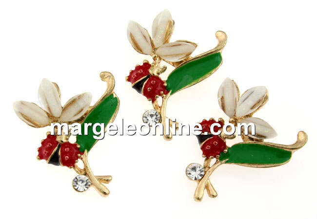 Brosa martisor, floare cu cristale, 32x27mm - xset 3buc