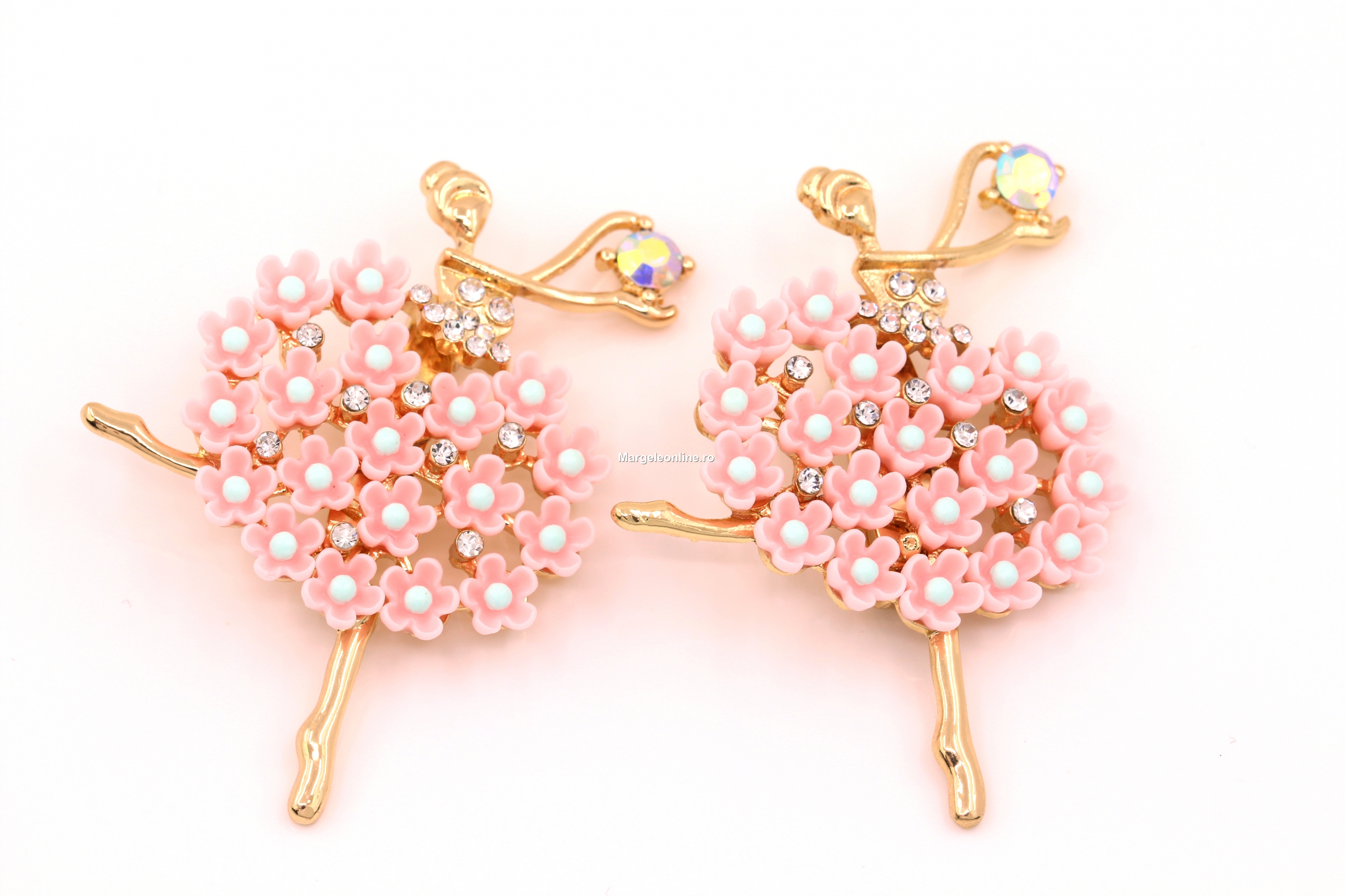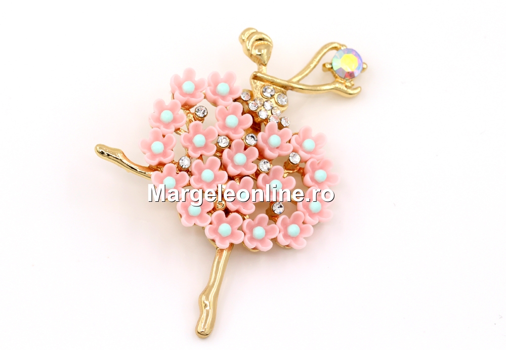 Brosa martisor frez, Balerina cu flori si cristale, 5.4x3.9cm - x1