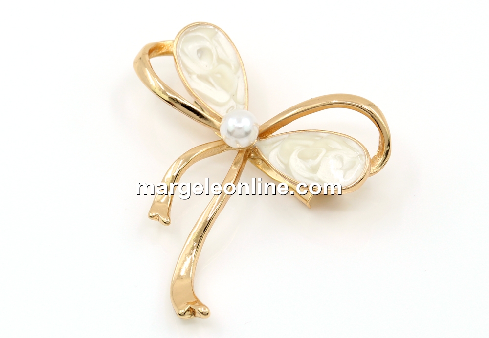 Brosa metalica cu email si perla, ideala pentru martisor, dimensiune totala: 4.4x4.2cm. Pretul este pentru 1 brosa.