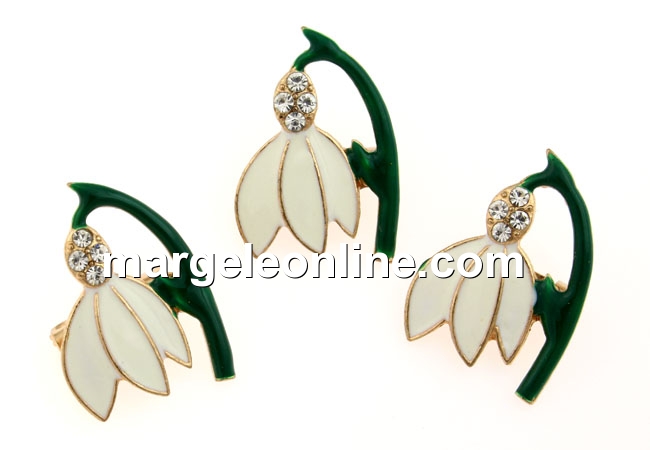 Brosa martisor, ghiocel cu cristale, 25x18mm - x3