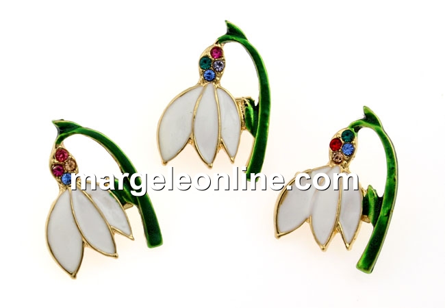 Brosa martisor, ghiocel cu cristale, 25x18mm - x3