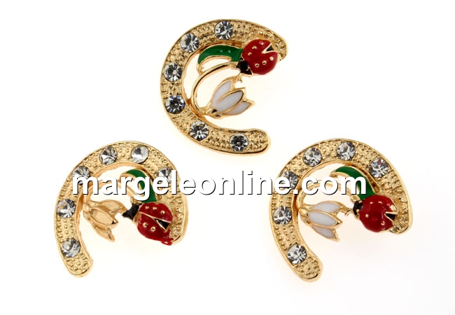 Brosa martisor, potcoava cu cristale, 22x19mm - x3