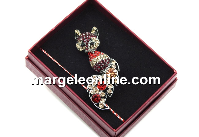 Brosa martisor, Vulpita cu cristale, 6x2.5cm, cutie inclusa - x1