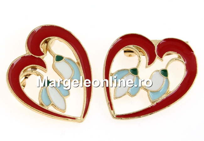 Brosa metalica martisor traditional, inima cu ghiocei - x2