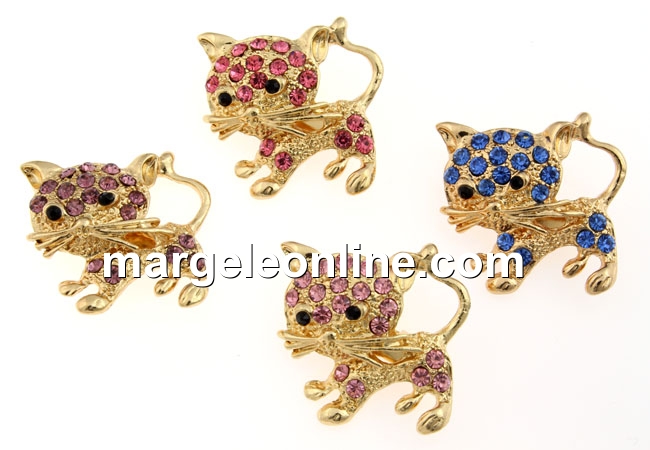 Brosa, motanel cu cristale, 26x25mm - xset 4 buc