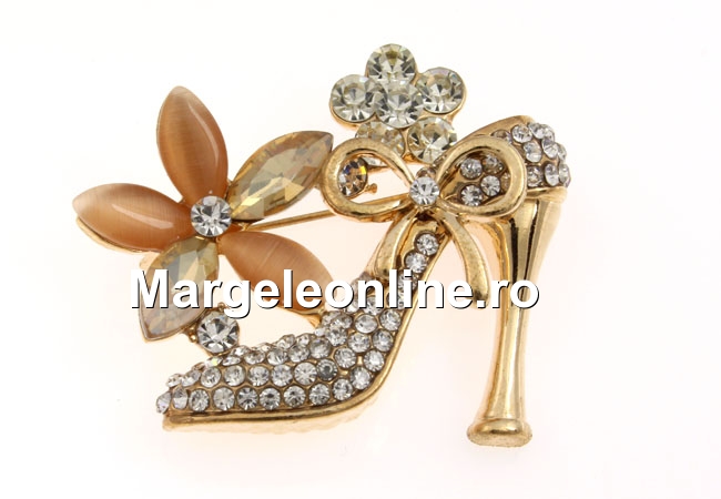Brosa, metalica, cu cristale si cabochoane ochi de pisica, dimensiune 44mm. Pretul este pentru 1 bucata.
