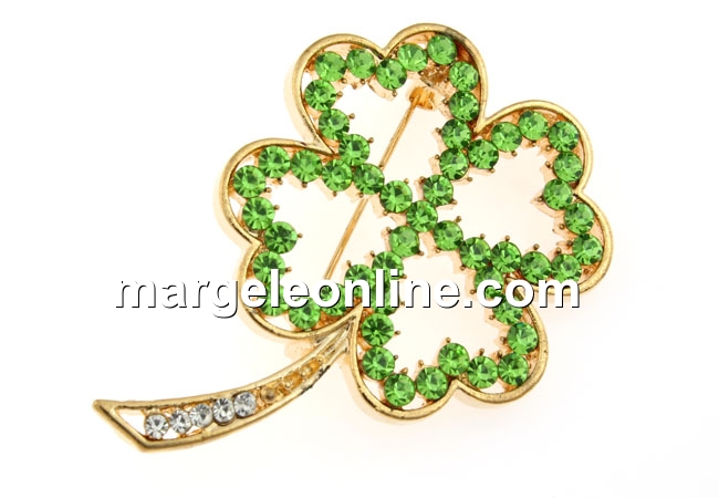 Brosa, trifoi cu cristale, 51x35mm - x1