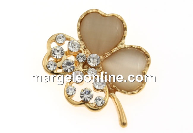 Brosa, trifoi cu cristale, bej nude, 33mm - x1