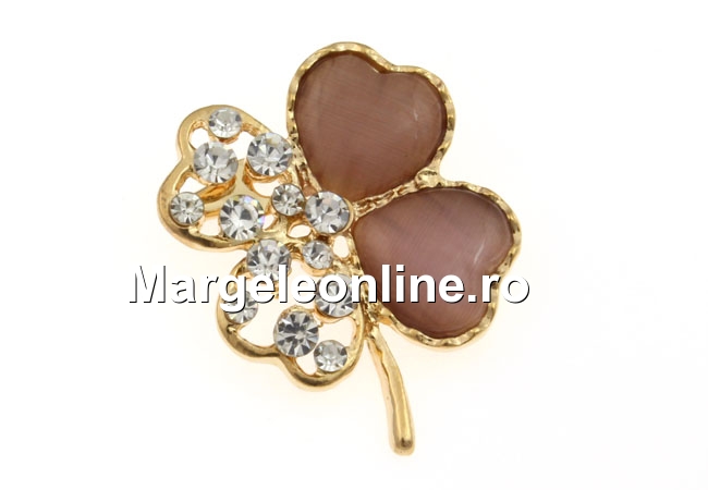 Brosa, trifoi cu cristale, mov vintage, 33mm - x1