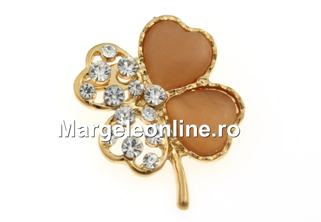 Brosa, trifoi cu cristale, piersica, 33mm - x1