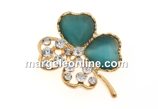 Brosa, trifoi cu cristale, turcoaz , 33mm - x1
