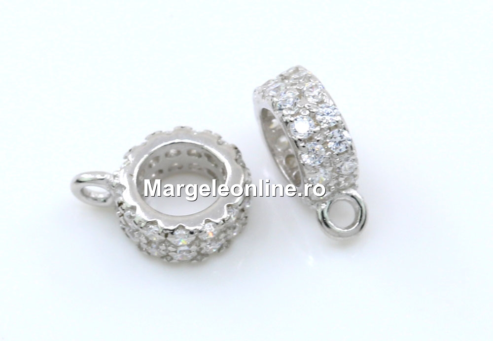 Charm decor cu cristale, argint 925 placat cu rodiu, 8mm - x1