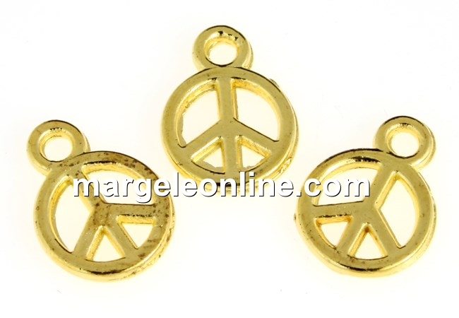 Charm "flower power", auriu, dimensiune: 11x8.5mm. Pretul este pentru 10 bucati.