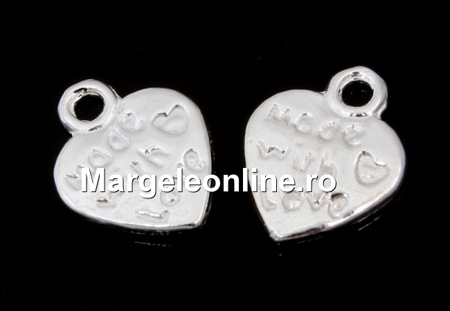 Charm inima, made with love, argint 925, 11.5mm - x1