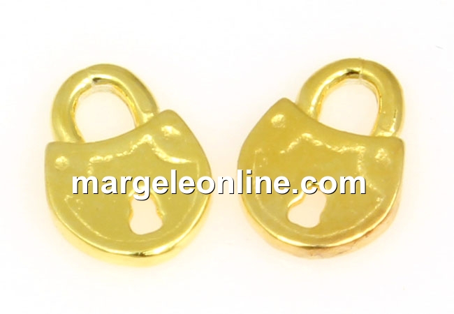 Charm lacatel, argint 925 placat aur, marcat, dimensiune: 9.5x7x1.2mm. Pretul se refera la 2 bucati.