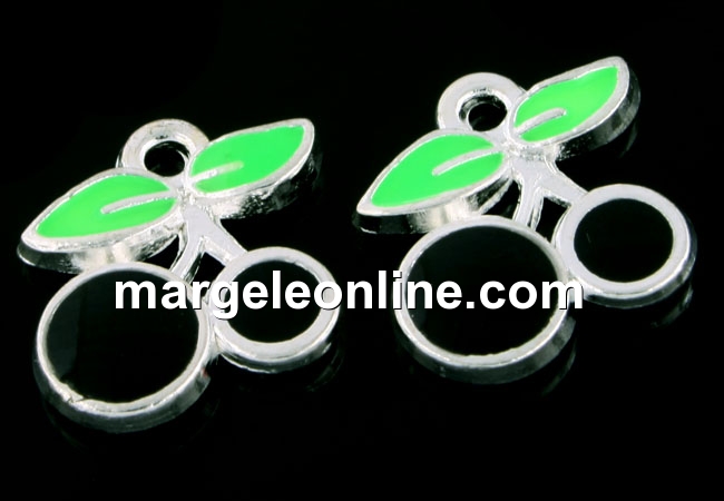 Charm metalic emailat, cirese, negru, 12mm - x5